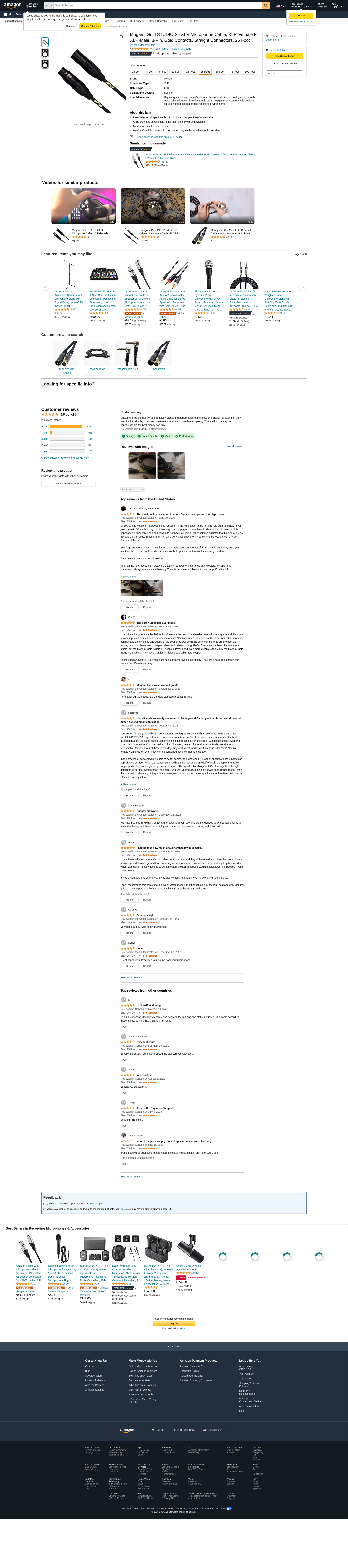 Mogami Gold STUDIO-25 XLR Microphone Cable, XLR-Female to XLR-Male, 3-Pin, Gold Contacts, Straight Connectors, 25 Foot