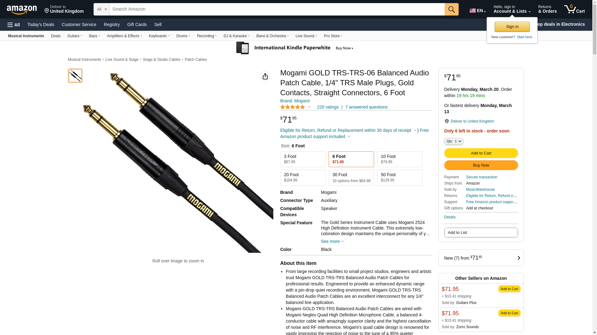 | Feature | From large recording facilities to small project studios, engineers and artists trust Mogami GOLD TRS-TRS Balanced Audio Patch Cables for professional results. Engineered to provide an enhanced dynamic range with a pin-drop quiet recording environment, Mogami GOLD TRS-TRS Balanced Audio Patch Cables are an excellent interconnect for any 1/4" balanced line application. |
