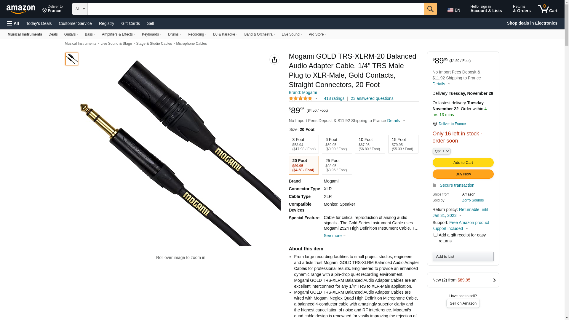 | Manufacturer | Mogami Cable |