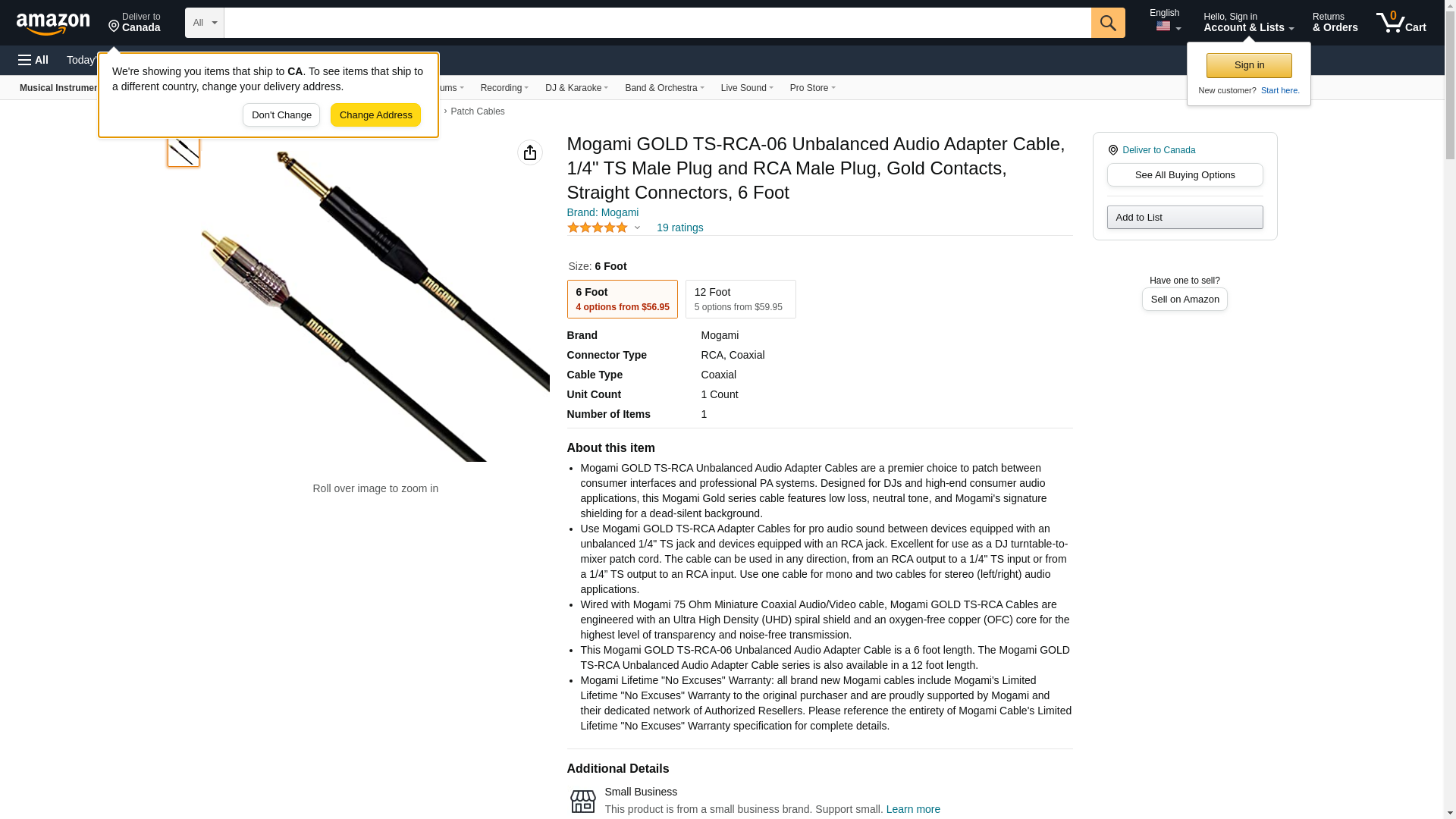 - This Mogami GOLD TS-RCA-06 Unbalanced Audio Adapter Cable is a 6 foot length. The Mogami GOLD TS-RCA Unbalanced Audio Adapter Cable series is also available in a 12 foot length.