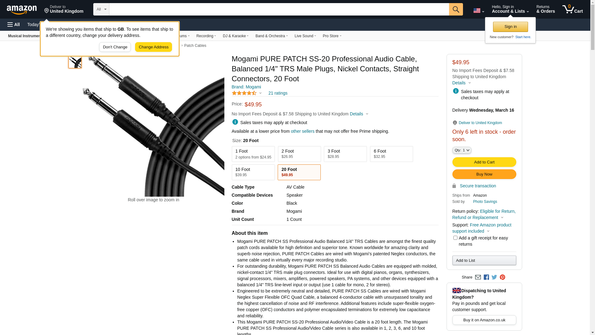 | Manufacturer | Mogami Cable |