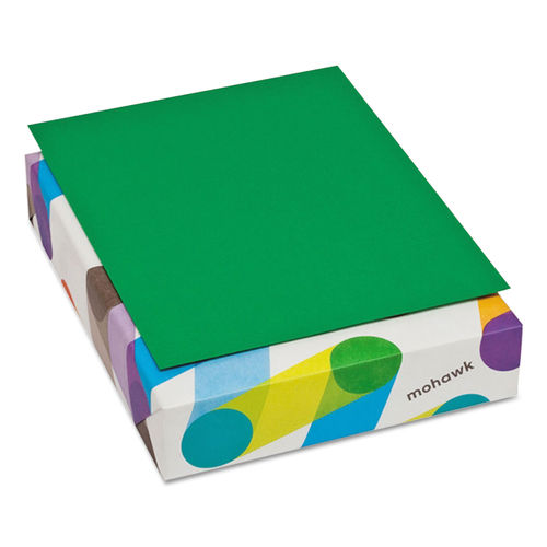 Amplify your message with colorful, vibrant BriteHue. Ideal for business printing, home office, school and craft use. Compatible with all types of office equipment. Acid-free for archival quality. Mohawk supports the use of non-polluting wind-generated electricity through the purchase of Green-e certified Renewable Energy Certificates (RECs) from windpower projects. Today, 100% of the electricity used in Mohawk's operations is matched with RECs. Size: 8 1/2 x 11; Paper Color(s): Green; Paper Weight: 24 lb; Sheets Per Unit: 500.