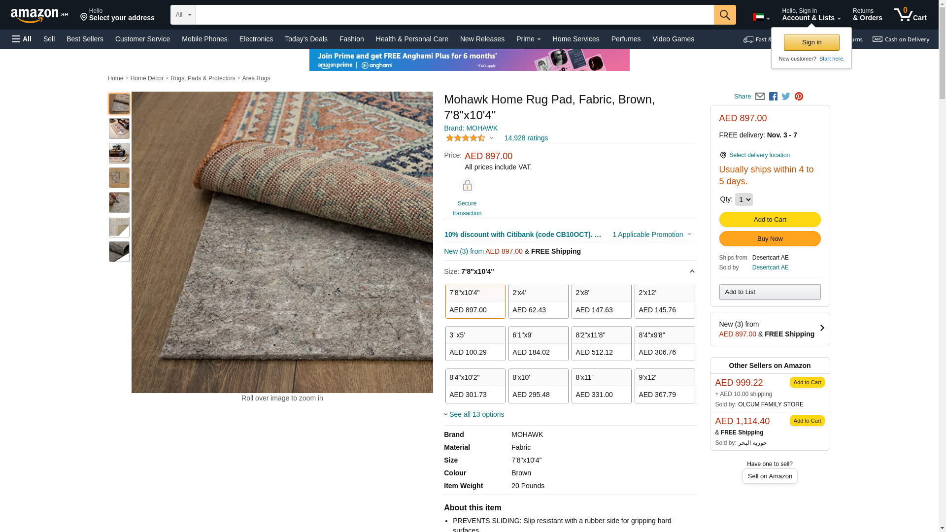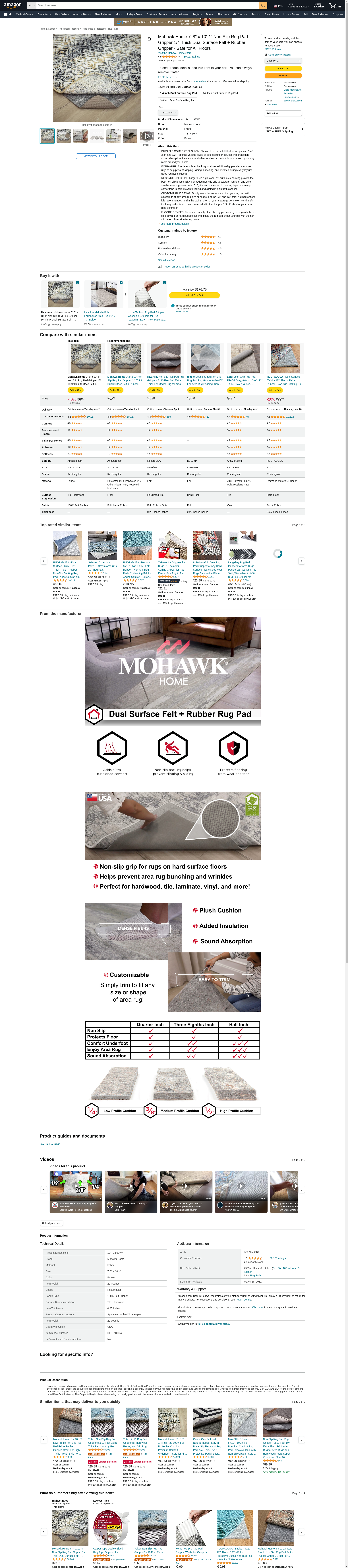 Mohawk Home DR002 999 092124 Brown Felt Rubber Rug Pad, 7'10 x 10'4, Multicolor