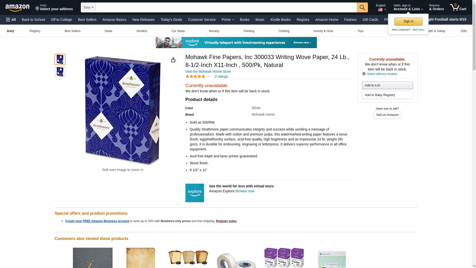 Mohawk Fine Papers, Inc 300033 Writing Wove Paper, 24 lb., 8-1/2-Inch x11-Inch , 500/PK, Natural