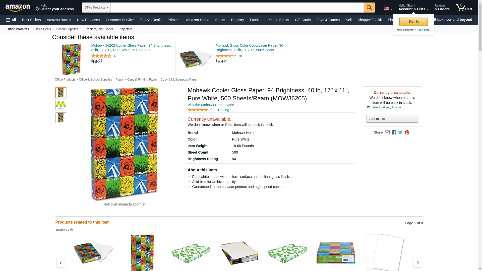 Mohawk "Copier Gloss Paper, 94 Brightness, 40lb, 17 x 11, Pure White, 500 Shts/Rm" Unit of measure: RM, Manufacturer Part Number: 36-205