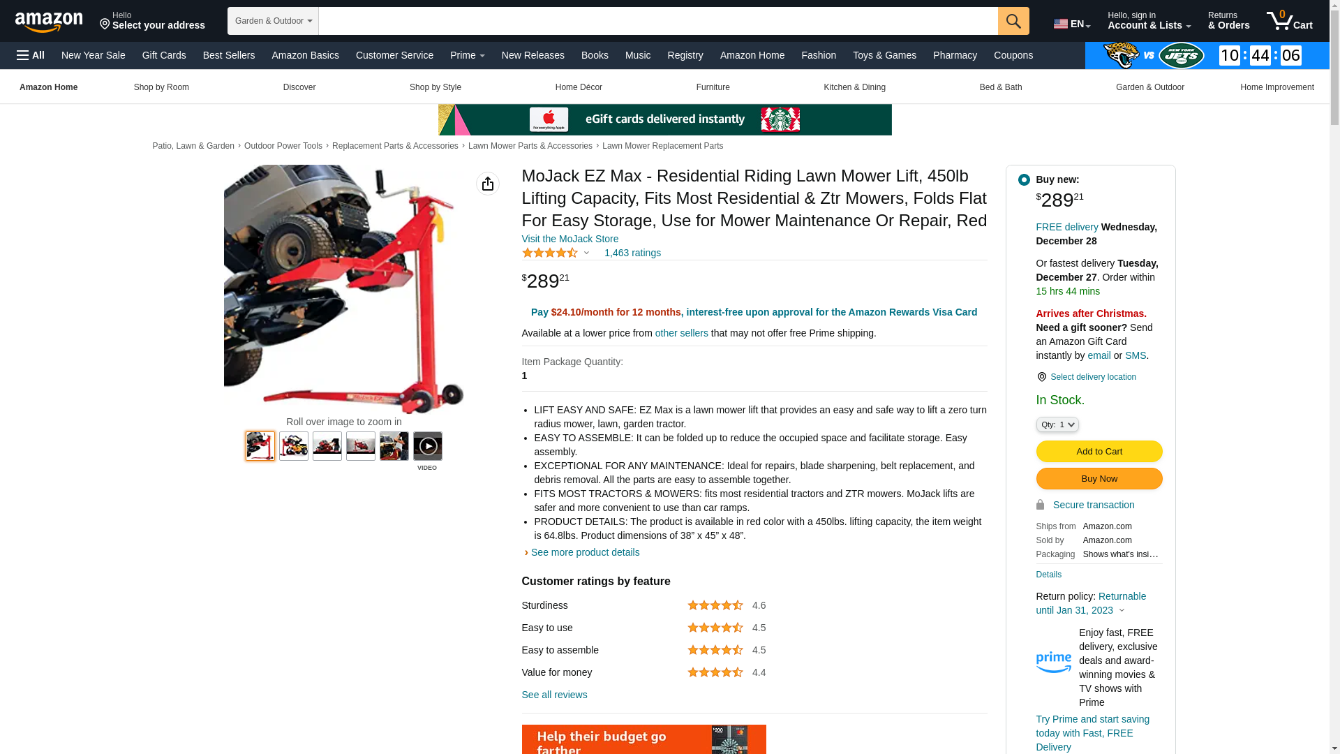The MoJack EZ Max is a 24" Collapsible lawn mower Jack. It features a unique clutch system for easy lifting & automatic safety system with smooth release handle. The clutch system provides the right amount of torque when lifting a light or heavy duty lawn mower or tractor. The lifting capacity 450 lbs (Lifting the front of the mower, not the total mower weight. Supreme lifting height of 24" High. Wheel span measurement: 18.5" - 47.5" (Inside to outside front tires) to fit most residential Tractor & ZTR mowers.