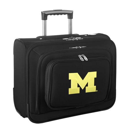 <br /> <b>Denco NCAA Wheeled Laptop Overnighter, Michigan:</b> <ul> <li>Telescoping handle</li> <li>In-line skate wheels</li> <li>Spacious main compartment with separate laptop sleeve and tablet pocket</li> <li>Lightweight and water-resistant</li> <li>Measures: 17"L x 14"W x 8.5"H</li> <li>3 zip pockets on exterior</li> <li>Holds most laptops up to 16" screens</li> </ul>