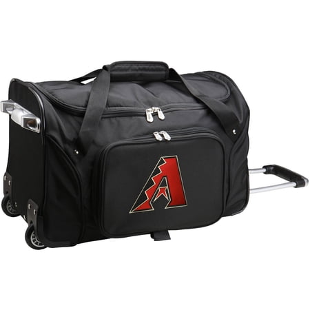 <br /> <b>Denco MLB 22" Rolling Duffel, Arizona Diamondbacks:</b> <ul> <li>Large wheeled duffel</li> <li>2 large compartments</li> <li>Telescoping handle</li> <li>Measures: 22"L x 12"W x 12"H</li> <li>Durable self healing zippers</li> <li>Multiple grab handles</li> <li>Large drop bottom compartment and second top compartment</li> <li>In-line skate wheels</li> <li>Embroidered team logo</li> </ul>