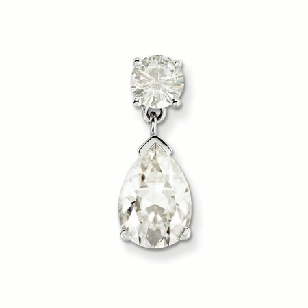 Material: Primary - Purity:14K <br />-Stone Type_1:Moissanite <br />-Stone Type_2:Moissanite <br />-Stone Quantity_1:1 <br />-Stone Quantity_2:1 <br />-Plating:Rhodium <br />-Stone Weight_1:1.950 ct <br />-Stone Weight_2:0.400 ct <br />-Material: Primary:Gold <br />-Stone Shape_1:Pear <br />-Stone Shape_2:Round <br />-Stone Size_1:10.00 x 7.00 mm <br />-Stone Size_2:5.00 mm <br />-Stone Treatment_1:Synthetic <br />-Stone Treatment_2:Synthetic <br />-Product Type:Jewelry <br />-Jewelry Type:Pendants & Charms <br />-Material: Primary - Color:White <br />-Stone Cut_1:Faceted <br />-Stone Cut_2:Faceted <br />-Stone Creation Method_1:Synthetic <br />-Stone Creation Method_2:Synthetic