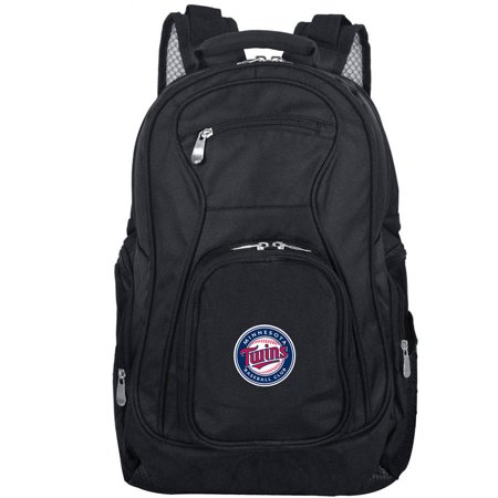 <br /> <b>Mojo Licensing Premium Laptop Backpack, Minnesota Twins:</b> <ul> <li>Exterior: main compartment, 2 zip pockets and 2 water bottle pockets</li> <li>Interior: laptop compartment, 2 slip pockets, organizer panel</li> <li>Nylon/polyester</li> <li>Holds most laptops with up to a 17.5" screen</li> <li>Headphone hole</li> <li>Mesh back</li> <li>Padded shock absorber shoulder pads</li> <li>Embroidered team logo</li> <li>Officially licensed</li> </ul>