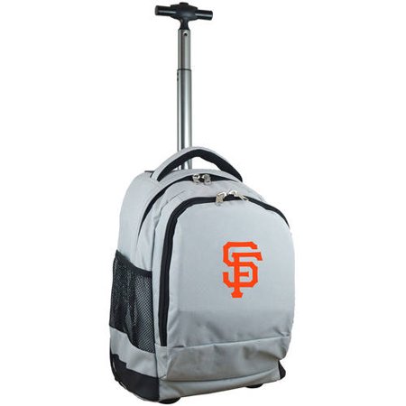 <br /> <b>Mojo Licensing Premium Wheeled Backpack, San Francisco Giants:</b> <ul> <li>Dimensions flat: 19" x 13" x 7.5"</li> <li>Made of 600D Polyester</li> <li>Large main compartment</li> <li>Holds most 17" laptops or tablets</li> <li>Adjustable handle</li> <li>In-line skate wheels</li> <li>Mono pull handle</li> <li>Organizer pocket and multiple extra pockets</li> <li>Padded shoulder straps</li> </ul>