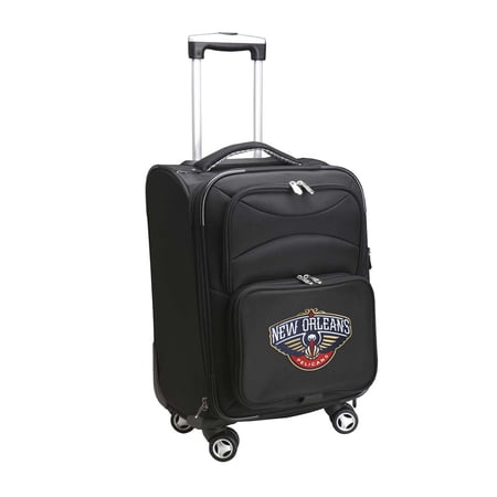<br /> <b>Denco NBA Carry-On Spinner, Pelicans:</b> <ul> <li>Dimensions: 21" x 14" x 11"</li> <li>Interior: Fully lined main compartment, zip pocket and shoe compartment</li> <li>Exterior: 2 zip pockets</li> <li>Corner mounted custom wheels</li> <li>Polycarbonate frame construction</li> <li>High def embroidery</li> <li>Durable self healing zippers</li> <li>Wipe clean</li> </ul>