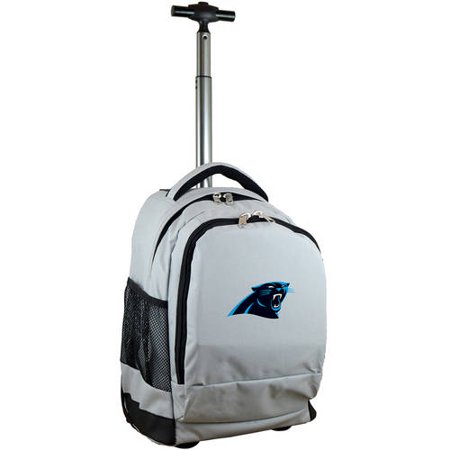 <br /> <b>Mojo Licensing Premium Wheeled Backpack, Carolina Panthers:</b> <ul> <li>Dimensions flat: 19" x 13" x 7.5"</li> <li>Made of 600D Polyester</li> <li>Large main compartment</li> <li>Holds most 17" laptops or tablets</li> <li>Adjustable handle</li> <li>In-line skate wheels</li> <li>Mono pull handle</li> <li>Organizer pocket and multiple extra pockets</li> <li>Padded shoulder straps</li> </ul>