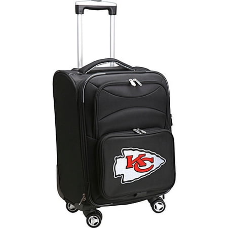 <br /> <b>Denco NFL Carry-On Spinner, Chiefs:</b> <ul> <li>Dimensions: 21" x 14" x 11"</li> <li>Interior: Fully lined main compartment, zip pocket and shoe compartment</li> <li>Exterior: 2 zip pockets</li> <li>Corner mounted custom wheels</li> <li>Polycarbonate frame construction</li> <li>High def embroidery</li> <li>Durable self healing zippers</li> <li>Wipe clean</li> </ul>