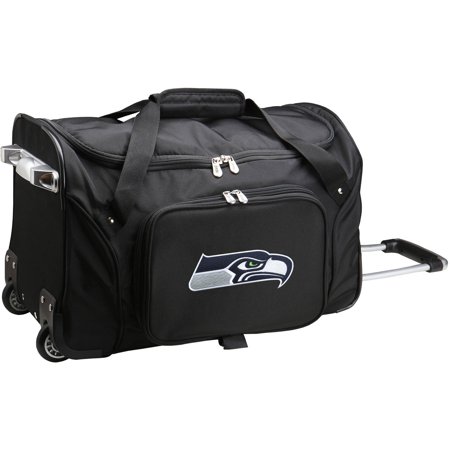 <br /> <b>Denco NFL 22" Rolling Duffel, Seattle Seahawks:</b> <ul> <li>Large wheeled duffel</li> <li>2 large compartments</li> <li>Telescoping handle</li> <li>Measures: 22"L x 12"W x 12"H</li> <li>Durable self healing zippers</li> <li>Multiple grab handles</li> <li>Large drop bottom compartment and second top compartment</li> <li>In-line skate wheels</li> <li>Embroidered team logo</li> </ul>