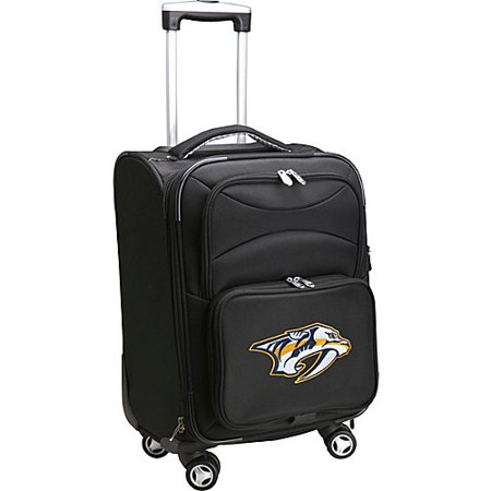 <br /> <b>Denco NHL Carry-On Spinner, Predators:</b> <ul> <li>Dimensions: 21" x 14" x 11"</li> <li>Interior: Fully lined main compartment, zip pocket and shoe compartment</li> <li>Exterior: 2 zip pockets</li> <li>Corner mounted custom wheels</li> <li>Polycarbonate frame construction</li> <li>High def embroidery</li> <li>Durable self healing zippers</li> <li>Wipe clean</li> </ul>