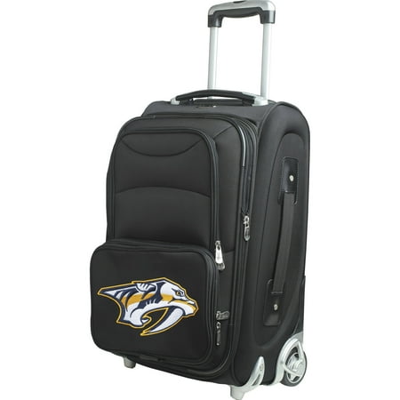 <br /> <b>Denco NHL 21" Carry-On, Nashville Predators:</b> <ul> <li>Measures 22" x 12" x 9"</li> <li>Exterior: Main compartment and 3 zip pockets</li> <li>Interior: Laptop sleeve and tablet pocket</li> <li>Durable self healing zippers</li> <li>4 wheels spin 360 degrees</li> </ul>