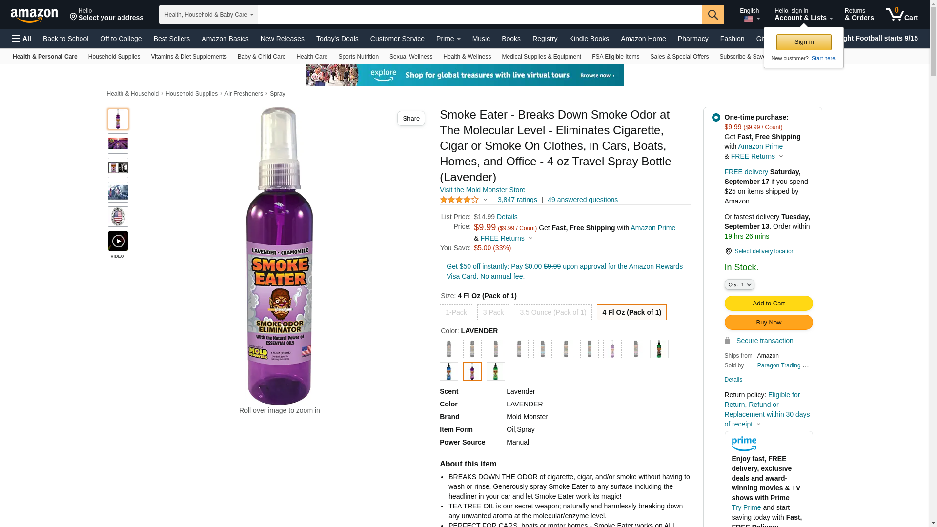 Smoke Eater - Breaks Down Smoke Odor at The Molecular Level - Eliminates Cigarette, Cigar or Pot Smoke On Clothes, in Cars, Boats, Homes, and Office - 4 oz Travel Spray Bottle (Lavender): Maxedbuy.com