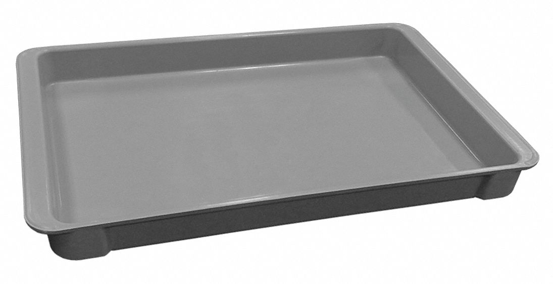 'Stacking Container, Width 11-7/8 In., Length 18-3/4 In., Height 1-3/4 In., Inside Bottom Length 17 In., Inside Bottom Depth 1-5/8 In., Inside Bottom Width 11 In., Inside Height 1-5/8 In., Inside Length 17 In., Inside Width 11 In., Outside Top Length 18-3/4 In., Outside Top Width 11-7/8 In., Outside Top Depth 1-3/4 In., Outer Height 1-3/4 In., Outer Length 18-3/4 In., Outside Width 11-7/8 In., Capacity 0.18 cu. ft., Stacking Capacity 1400 lb., Load Capacity 200 lb., Gray'