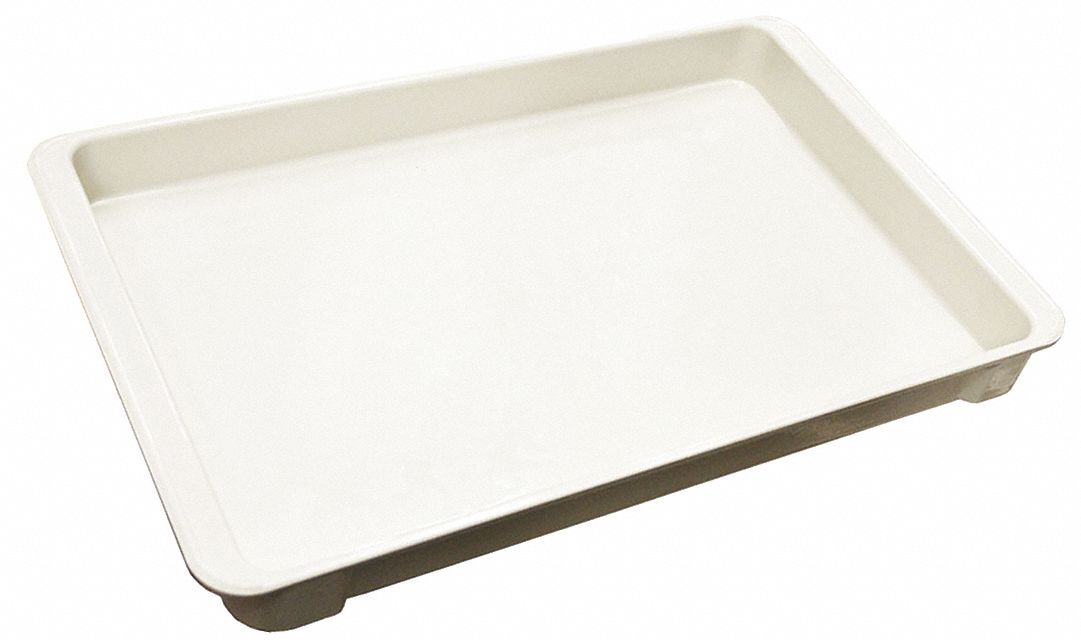 Stacking Container, Container Wall Type Solid, Fork Pockets No, Includes Lid No, Material Fiberglass Reinforced Composite, Maximum Operating Temperature 250 Degrees F, Minimum Operating Temperature -60 Degrees F, Body Color White, Nestable No, Overall Height 1 3/4 in, Overall Length 18 3/4 in, Overall Width 11 7/8 in, Resistant To Alkaline Solutions, Cutting Oils, Detergents, Mild Acids, Stackable Yes, Stacking Capacity 1,400 lb, Volume Capacity 1.3 gal, Weight Capacity 200 lb, NSF Certified No