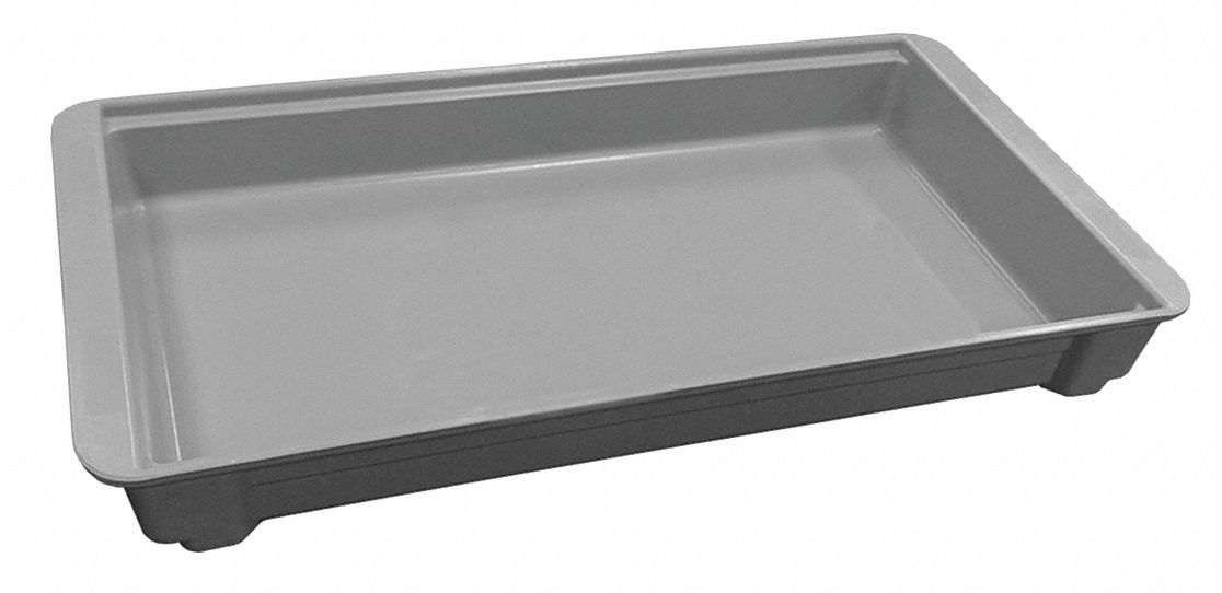 'Stacking Container, Width 11-1/4 In., Length 20-3/4 In., Height 2-3/8 In., Inside Bottom Length 18-5/8 In., Inside Bottom Depth 2-1/4 In., Inside Bottom Width 9-3/4 In., Inside Height 2-1/4 In., Inside Length 18-5/8 In., Inside Width 9-3/4 In., Outside Top Length 20-3/4 In., Outside Top Width 11-1/4 In., Outside Top Depth 2-3/8 In., Outer Height 2-3/8 In., Outer Length 20-3/4 In., Outside Width 11-1/4 In., Capacity 0.24 cu. ft., Stacking Capacity 1050 lb., Load Capacity 150 lb., Gray'