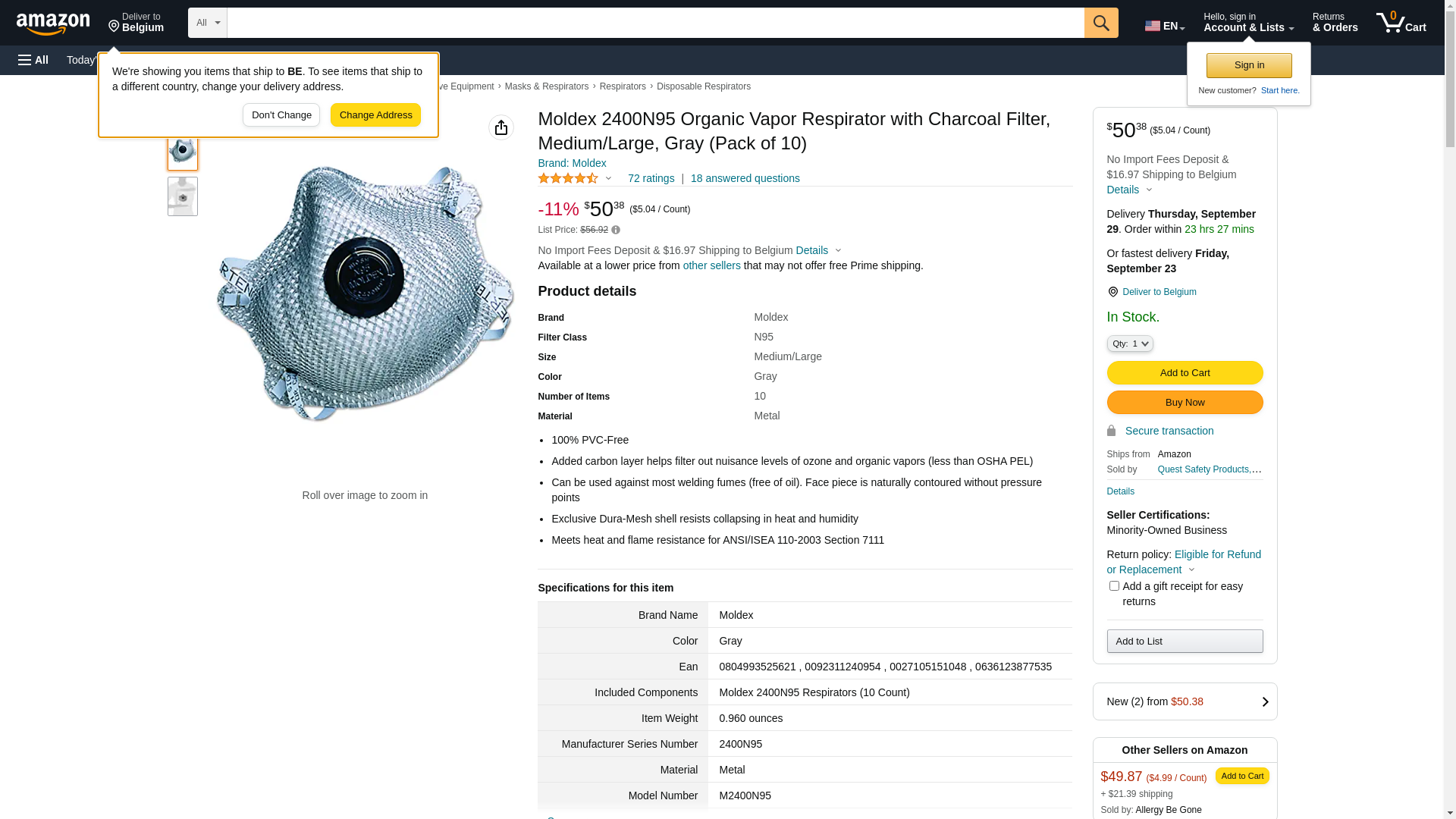 ![]() safewareinc.com | MOL 2400N95 | 1 | 1 | 1 @ $49.40 | |