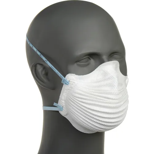 | Feature | Price For: Each Filter Class: N95 Includes: Dura-Mesh(R) Shell, Molded Nose Bridge w/ cushion, Softspun Lining(R) Headstrap Type: Dual, Non-Adjustable Standards: NIOSH Approved, ANSI/ISEA 110-2003 Sec. 7.11.1 Heat and Flame Resistance Fluid Resistant: No Mask Size: M/L Respirator Shape: Molded Individually Packaged: No Item: Disposable Particulate Respirator Nose Clip: No |
