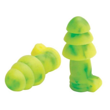 Reusable earplug; swirled green color; corded (6455), uncorded (6450) styles; PVC-free; NRR 27 rating; independently tested to ANSI S3.19-1974.