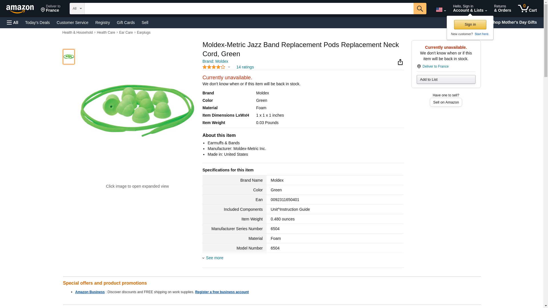 | Feature | Price For: Each Green Environmental Attribute: Does not Contain PVC For Use With: Mfr. No. 6506 Jazz Band(R) 25dB Earing Protector Country of Origin (subject to change): United States |