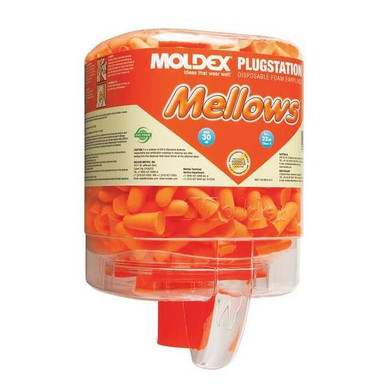 PlugStation w/ MellowsManufactured By: Moldex MetricMade of extra-soft, extra-light foam.Tapered shape fits easily in ear canal and gently and snugly seals without pressure.Smaller design is perfect for extended wear.Provide maximum foam comfort with appropriate protection for mid- to high-level noise areas.Hi-viz bright orange plug and neon green cord.Non-irritating, 100% PVC-free.Available with recyclable PlugStation dispenser.Tested to ANSI S3.19-1974. The bright green color is a trademark of Moldex-Metric, Inc.