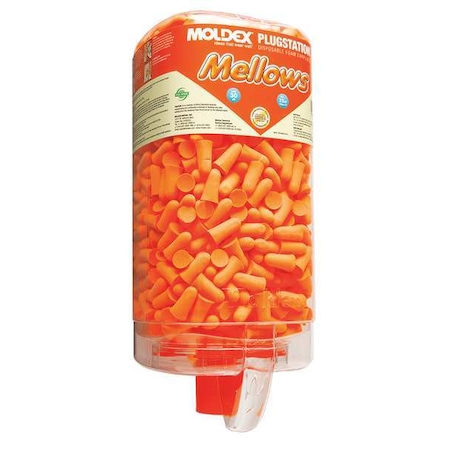 PlugStation w/ MellowsManufactured By: Moldex MetricMade of extra-soft, extra-light foam.Tapered shape fits easily in ear canal and gently and snugly seals without pressure.Smaller design is perfect for extended wear.Provide maximum foam comfort with appropriate protection for mid- to high-level noise areas.Hi-viz bright orange plug and neon green cord.Non-irritating, 100% PVC-free.Available with recyclable PlugStation dispenser.Tested to ANSI S3.19-1974. The bright green color is a trademark of Moldex-Metric, Inc.