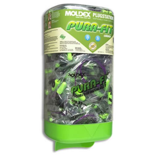 MOLDEX 6882 PURA-FIT PLUGSTATION EARPLUG DISPENSER, CORDED, 150 PAIRS/DISPENSER PLUGSTATION 150 PAIRS PURA-FIT CORDED EARPLUGS WITH MOUNTING BRACKET. The earplugs can be placed in all the places you need. Increase compliance, because the high visibility of the dispenser increases awareness so time is not wasted searching for caps. The earplugs are sealed to ensure the earplugs stay clean and sanitary, with corded plugs, pull to dispense corded earplugs, so you don't have to worry about the earplugs falling on the floor or trays to collect dust and contaminants. ANTS. The first wired dilator. The wired earplugs are NRR 33DB. Compliance- High visibility to increase awareness of your conservation hearing program. Convenience: Hang a socket anywhere they are needed. Cost Savings: Workers take one pair at a time, so there is no waste of multiple pairs. 150 pairs of pure fit cord earplugs, included in each dispenser. Earplugs made of extra-soft, lightweight PVC-free foam for added comfort. Convenient, quick access and easy to use, leading to greater compliance. 100% PVC free.