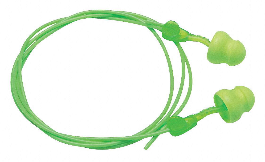 Ear Plugs, Disposable, Corded, 100 Pairs per Package, Noise Reduction Rating NRR 30 dB, Metal Detectable No, Ear Plug Size M, Ear Plug Shape Pod, Ear Plug Color Green, Ear Plug Material Soft Foam, Band Color - Hearing Protection Green, Band Material - Hearing Protection Plastic, Ear Plug Packaging Bulk Bag, Unwrapped, Standards OSHA, Package Quantity 100