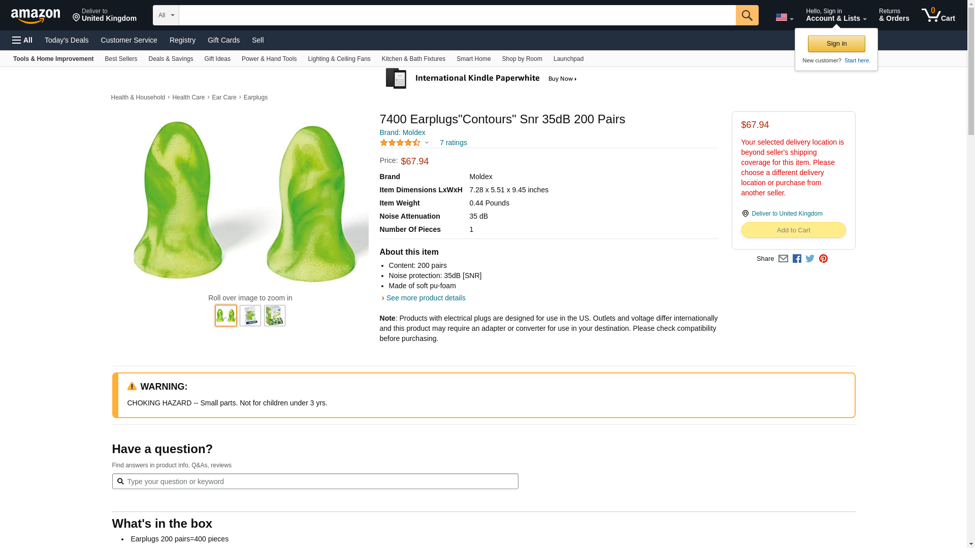 7400 Earplugs "Contours" Snr 35dB 200 Pairs