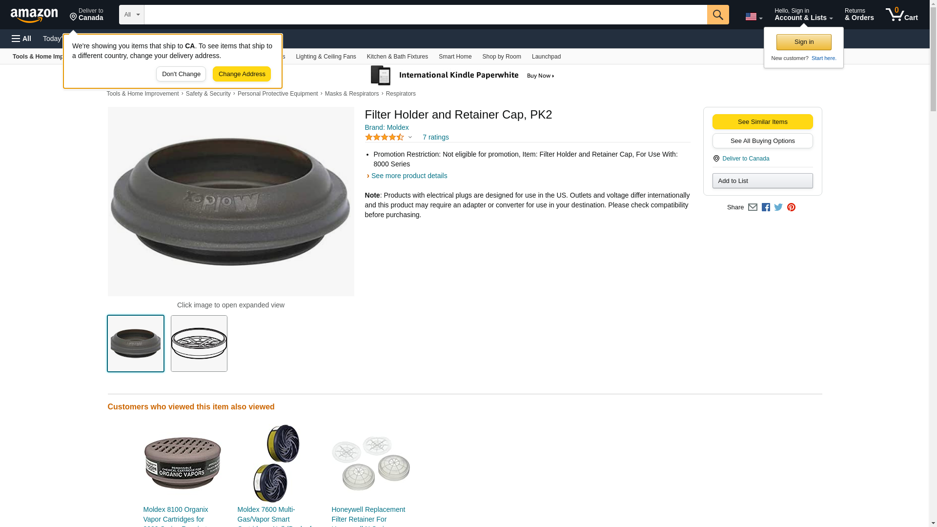 - Promotion Restriction: Not eligible for promotion, Item: Filter Holder and Retainer Cap, For Use With: 8000 Series