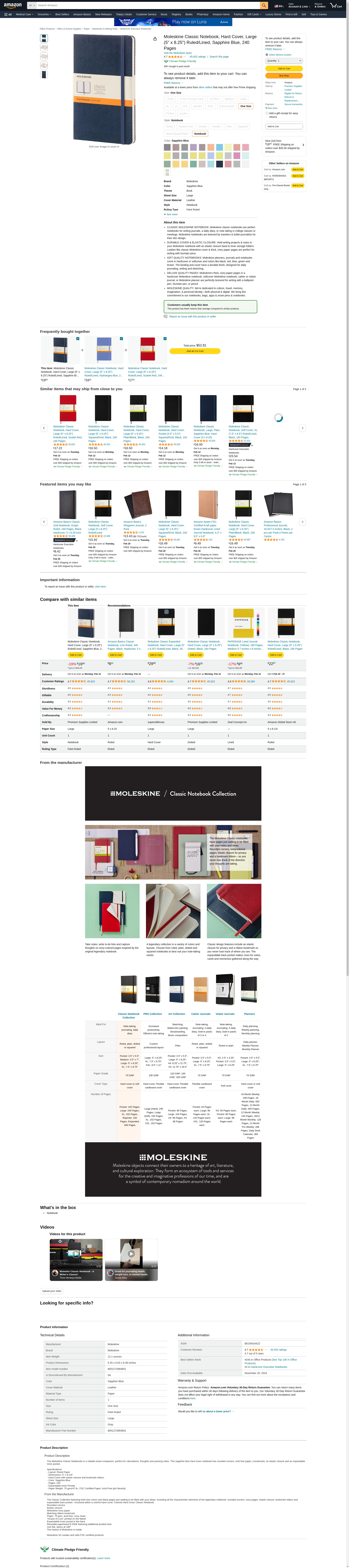 - CLASSIC MOLESKINE NOTEBOOK: Moleskine classic notebooks are perfect notebooks for writing journals, a daily diary, or note taking in college classes or meetings. Moleskine notebooks are beloved by travelers & bullet journalists for their slim design.