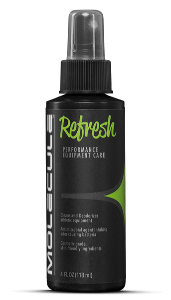 MOLECULE REFRESH is a lightly scented spray specifically formulated to deodorize performance wear and equipment. Cosmetic-grade formula contains proprietary Pico12 suppression technology to attack odors at the source and inhibit growth. Containing benzalkonium chloride (BKC) sanitizing ingredient, REFRESH keeps you clean, healthy and performing at your best.