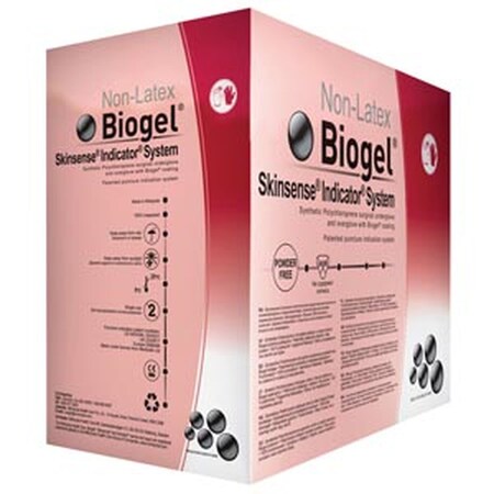 Molnlycke 40680 Biogel Skin Sense Indicator Sterile Powder Free Non-Latex Surgical Under Glove, Synthetic Polychloroprene Copolymer, Blue 8" Length, Beaded-Cuff (Pack of 200)