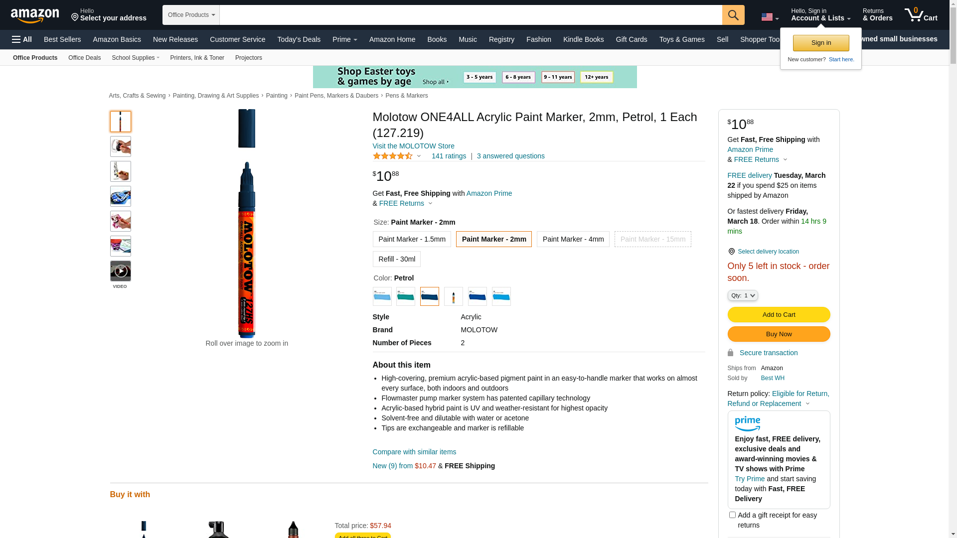 MOLOTOW ONE4ALL Acrylic Paint Marker, 2mm, Petrol, 1 Each (127.219)