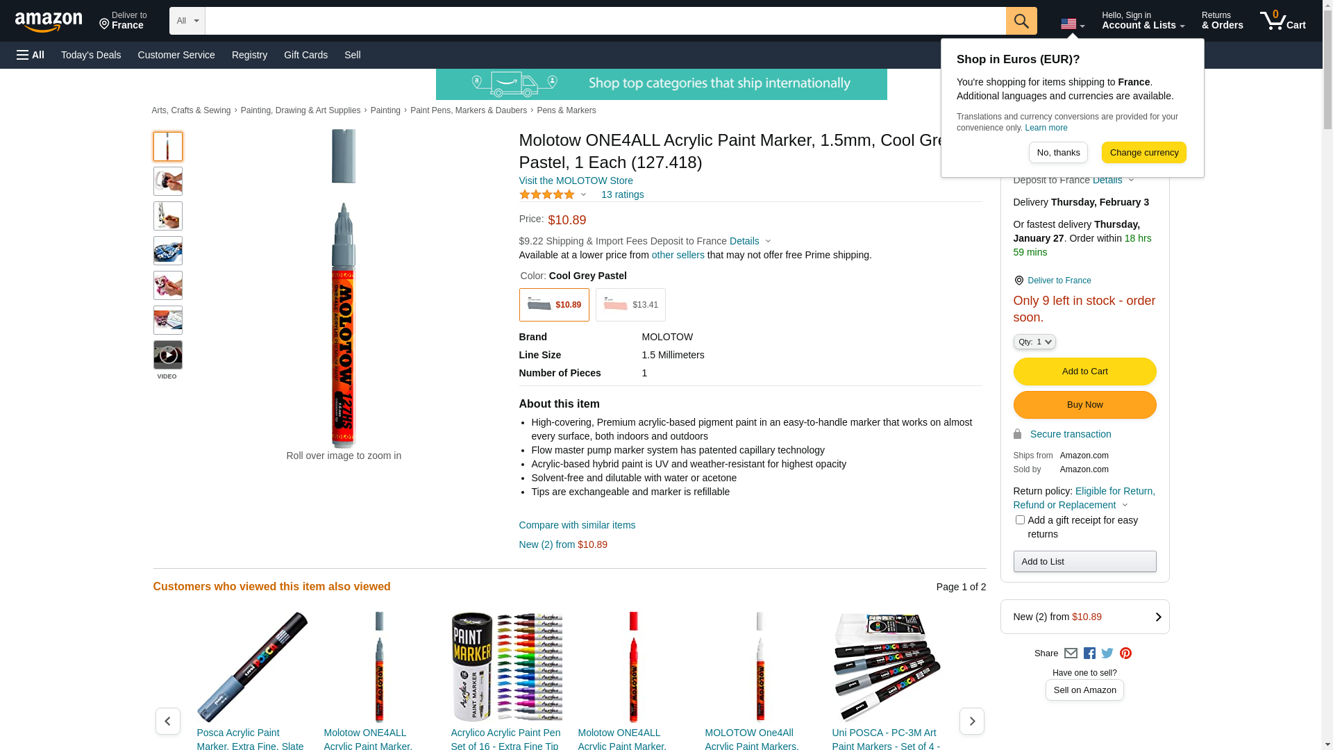 Molotow ONE4ALL Acrylic Paint Marker, 1.5mm, Cool Grey Pastel, 1 Each (127.418)