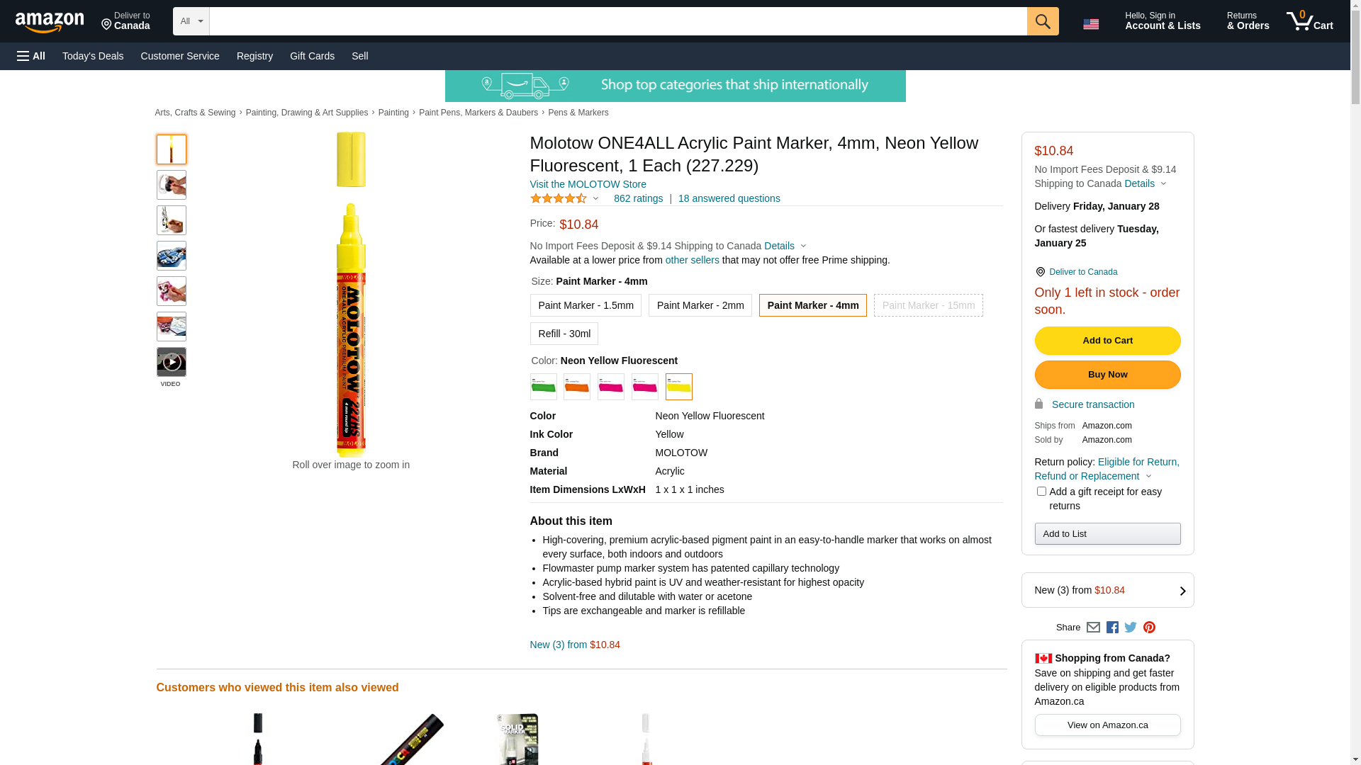 MOLOTOW ONE4ALL Acrylic Paint Marker, 4mm, Neon Yellow Fluorescent, 1 Each (227.229)