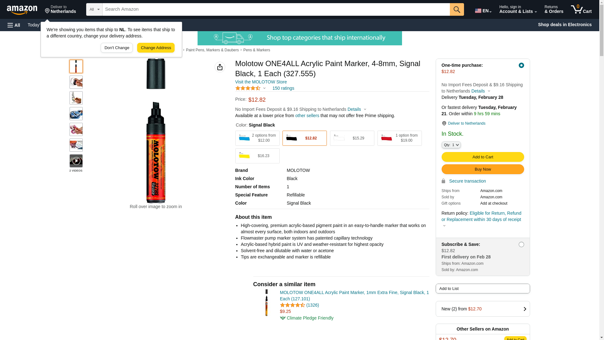 Molotow ONE4ALL Acrylic Paint Marker, 4-8mm, Signal Black, 1 Each (327.555)