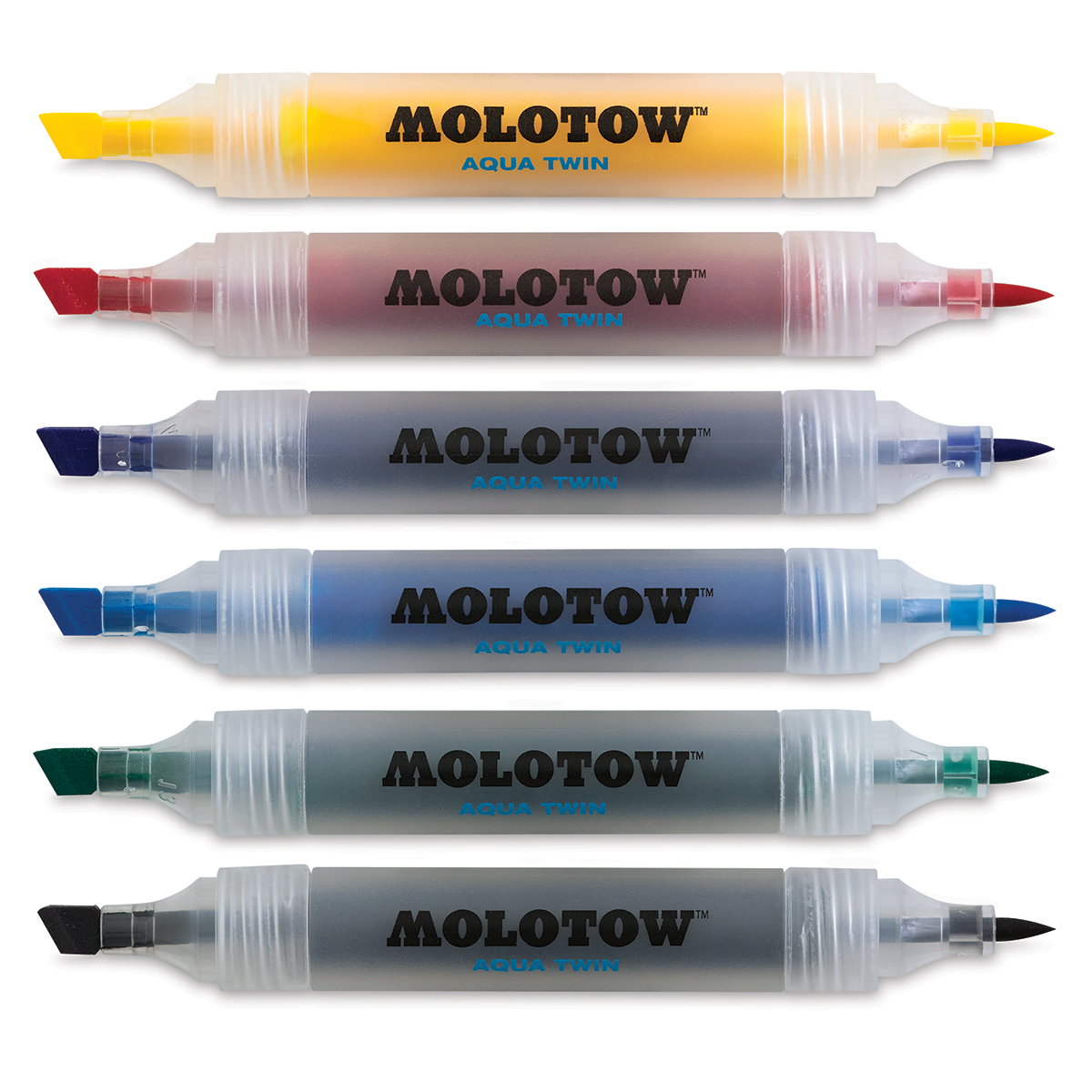 Molotow Aqua Twin Marker Complete Color Set, Brush and Chisel Nib, Assorted Colors, 12 Marker Set, 1 Set Each (729.311)
