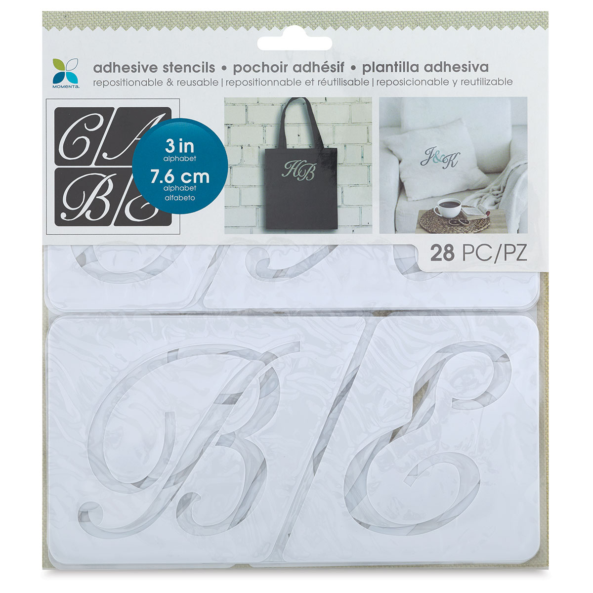 Momenta Script Adhesive Fabric Stencil Alphabets, White