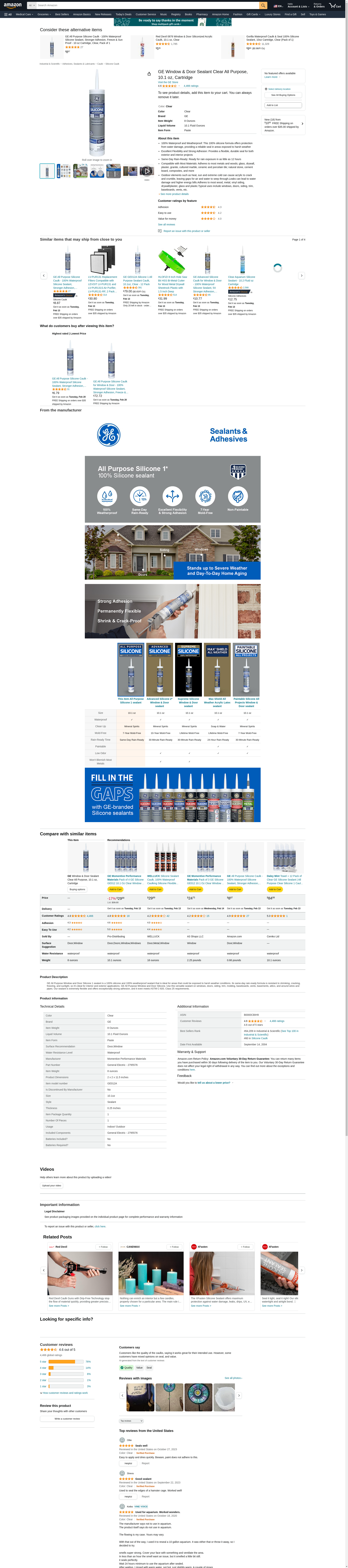 | Feature | GE 100% Silicone is 100% waterproof and 100% weatherproof. |