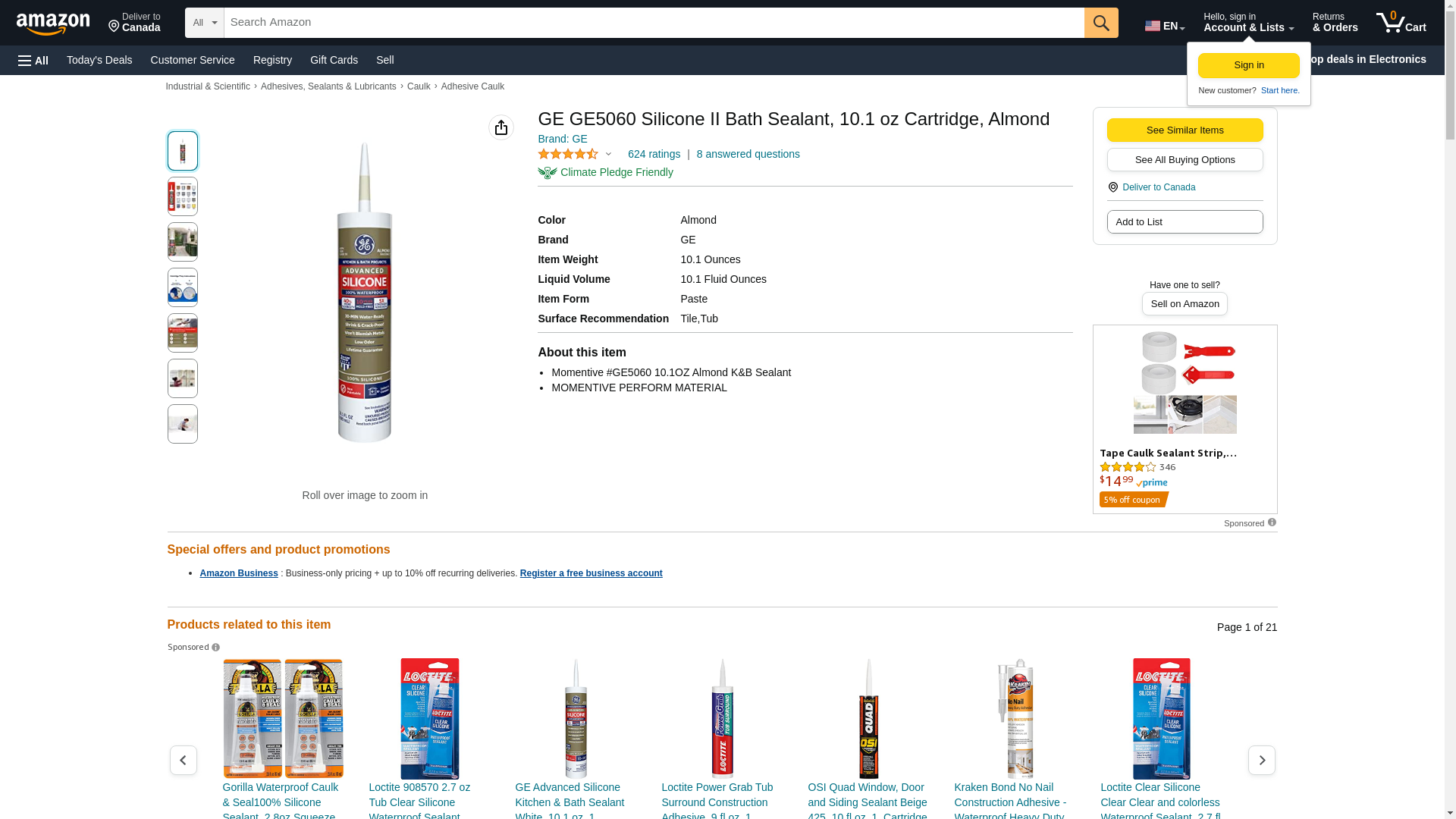 Ge Almond Kitchen and Bath Sealant, Silicone, 10.1 oz. 10.1 oz. Almond Kitchen and Bath GE5060-1 Each