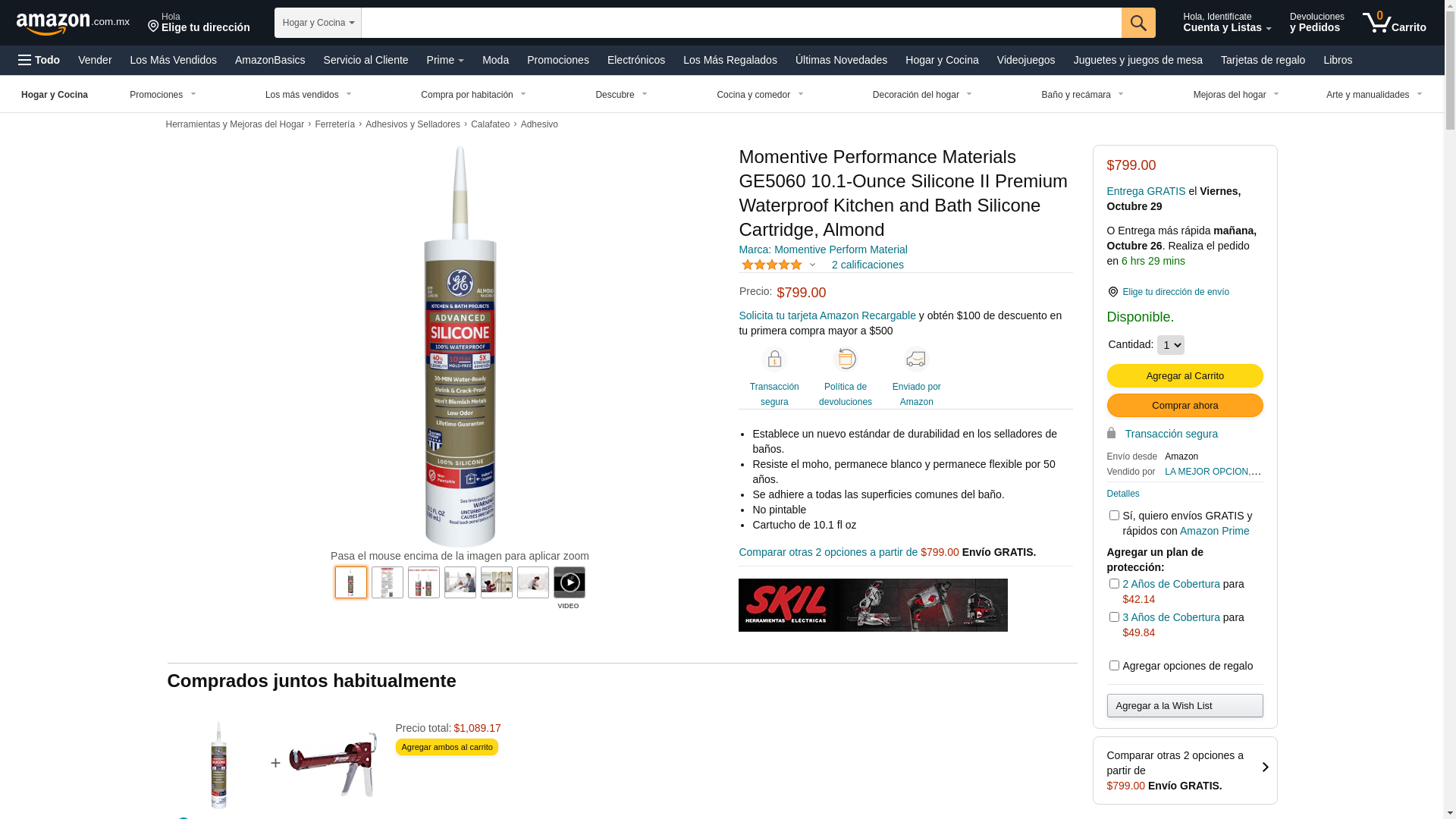 GE Momentive Performance Materials GE Silicone 2+ Kitchen & Bath Caulk, 10.1 Oz. Tube, Almond, GE5060, 10.1oz,