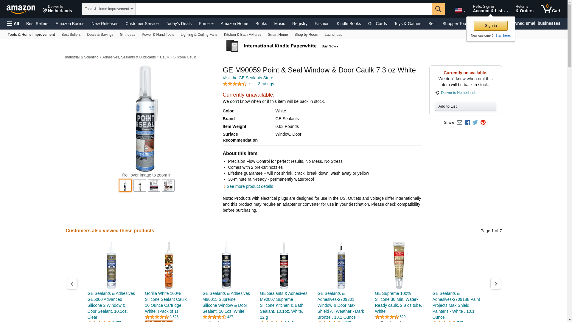GE Point and Seal White Silicone 2 Window and Door Silicone 7.25 oz.