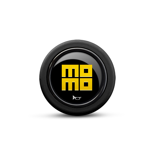 MOMO - Momo Steering Wheel Horn Button (Rounded) - Gloss Black Yellow Heritage Logo - HORN/LG/HRTG - Goturbo