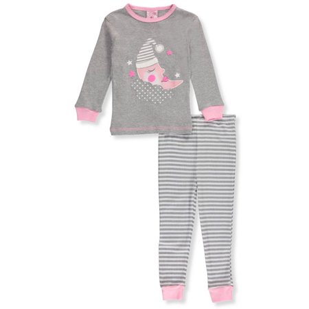 She'll love the cute and cozy style of this Mon Petit pajama set! <ul> <li>Mon Petit 2-piece pajamas</li> <li>Jersey top with picot trim and embroidered applique (100% cotton)</li> <li>Printed jersey joggers with elastic waistband (100% cotton)</li> <li>Not flame resistant should fit snugly</li> <li>Machine wash cold</li> <li>Imported</li> </ul>